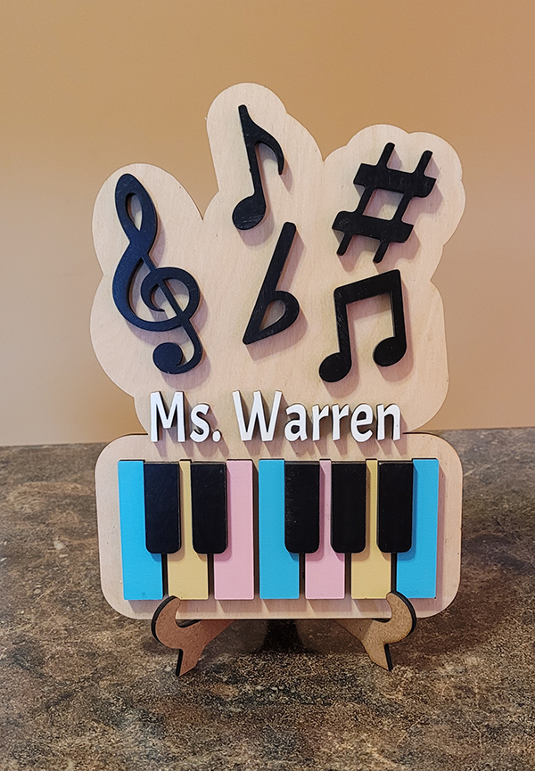 Personalized Laser Cut 3D Piano Gift for Teacher with Easel
